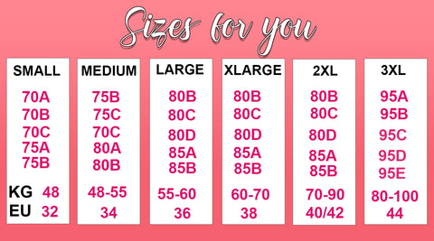 - Sizes: S, M, L, XL, XXL, 3XL (fits for 32A to 44E)